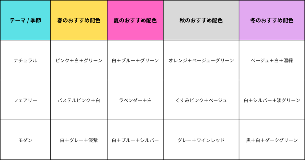 - 季節感を出しやすく、失敗しても目立ちにくい