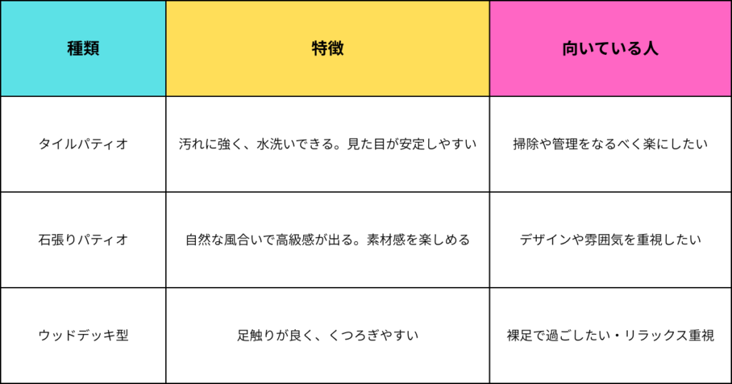パティオの主な種類と特徴