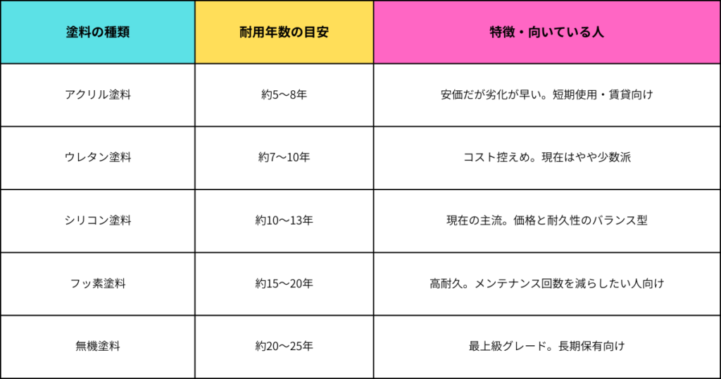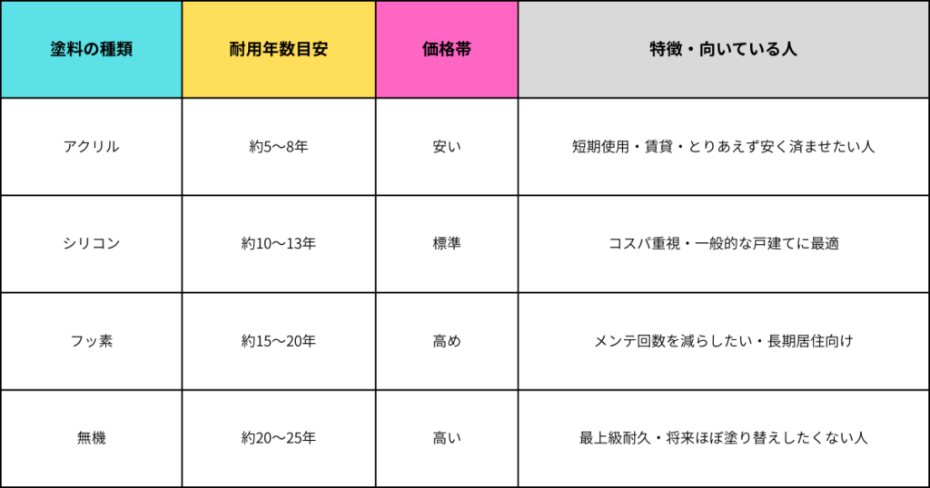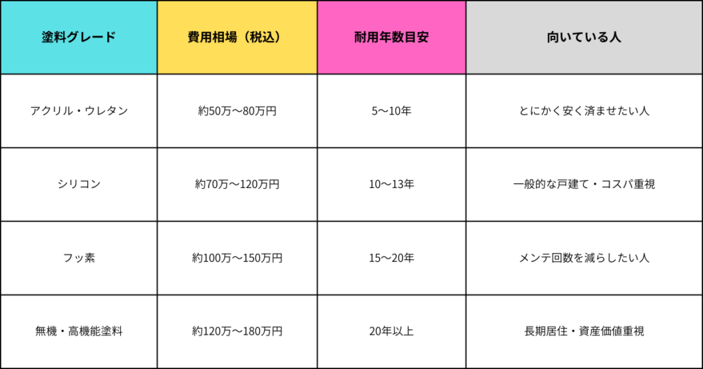 - 「高耐久塗料」「シリコン系」など、曖昧な表現だけの見積もりは危険です。