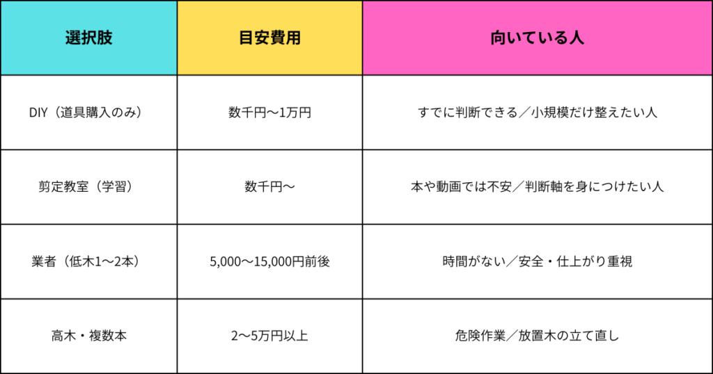 剪定の主な選択肢と費用目安