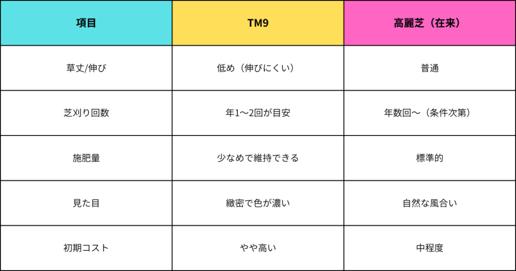 2. TM9のメリット・デメリット(高麗芝との違い)